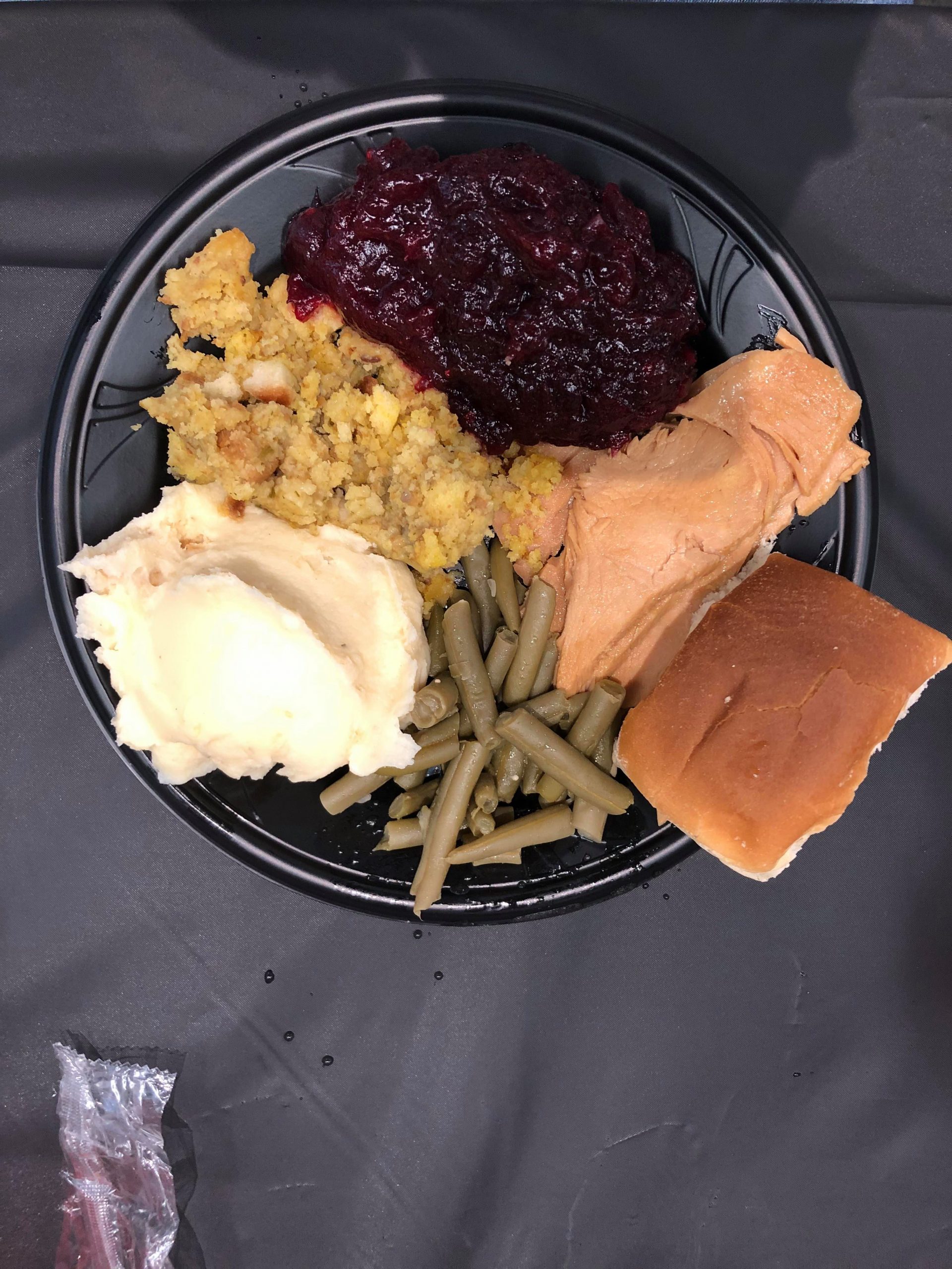 Jeff decided to ask the manager, Ethan, who had just been berated by an upset customer who seemed to be having a bad day in general, if Kroger might consider donating some of the cans of cranberry sauce to the cause of this community meal. Without hesitation Ethan agreed to the notion of donating and went upstairs to retrieve two full cases of canned cranberry sauce and handed them to the (now eager) Jeff and crew. On the drive back to the building the meal was being served in, most of the cans started to be opened for quick serving upon arrival.